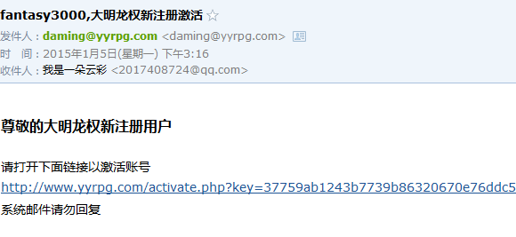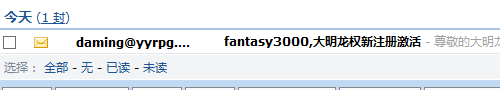 3、打开注册邮箱的收件箱(或者垃圾箱),会看到佳游官方信箱发来的激活邮件